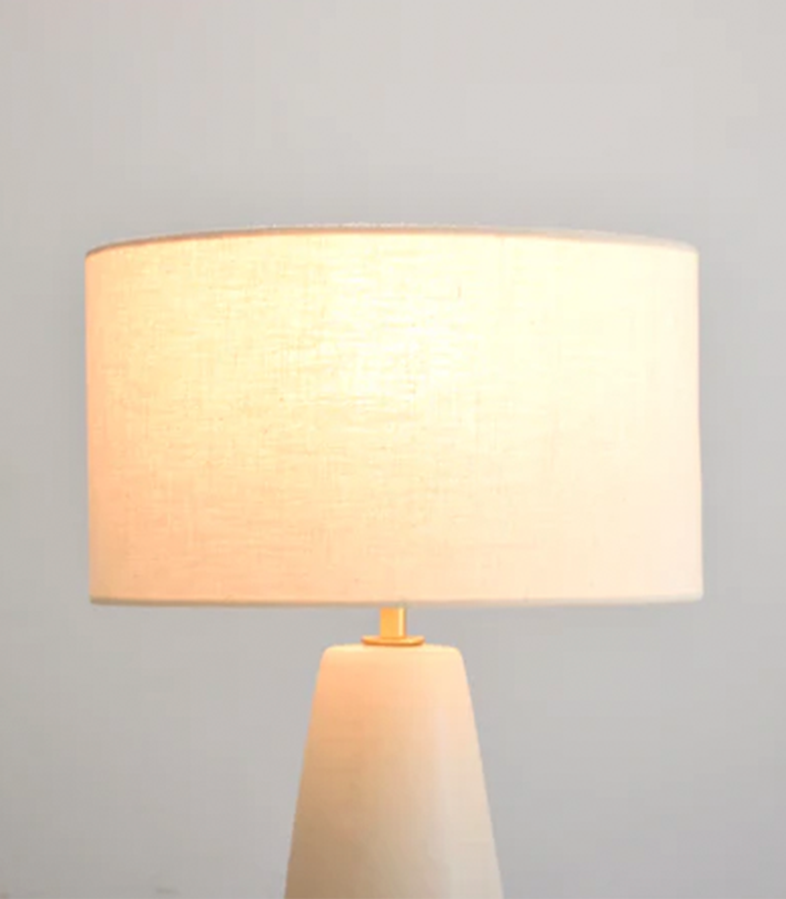 L’abat-jour en lin, fabriqué à partir de fibres naturelles, s’harmonise parfaitement avec la base en céramique, créant une pièce au design intemporel et sophistiqué.